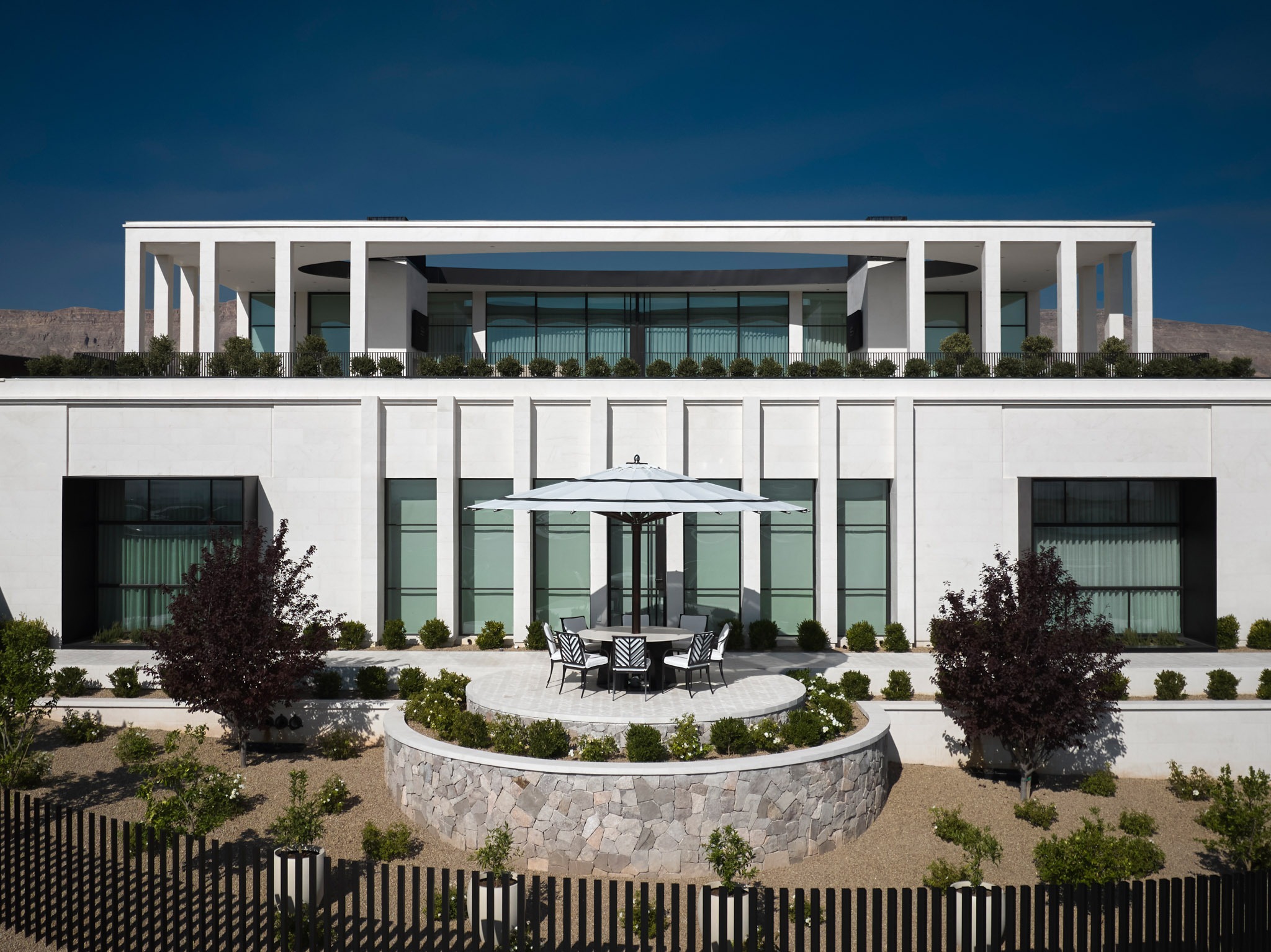 Tombolo is a precision-crafted luxury residence designed by Daniel Joseph Chenin, FAIA, and brought to life by Forté Specialty Contractors through self-performed excellence and advanced construction methods. Perched atop a natural rise in the Nevada desert, the home balances bold architectural geometry with refined material composition. Forté traveled to quarries in Italy and Turkey to hand-select each stone, ensuring a completely unique and cohesive palette throughout the property. From near-zero tolerance steel framing to bespoke fabrication elements such as the engineered La Cornue island substructure and custom architectural details, Tombolo reflects Forté’s commitment to craftsmanship, accuracy, and delivering visionary builds without compromise.